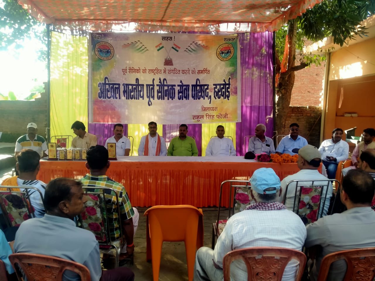 कपिल मौर्या/हरदोई : अखिल भारतीय पूर्व सैनिक सेवा परिषद हरदोई के द्वारा संघटन के वार्षिक सम्मेलन का आयोजन संपन्न हुआ जिसमे जिला अध्यक्ष राहुल सिंह फौजी ने सर्वप्रथम अपने वक्तव्य में संगठन के सभी सदस्यो को वार्षिक उत्सव की बधाई दी एवं इसके पश्चात् संगठन के सदस्यो द्वारा शहीदो को नमन करते हुए श्रद्धांजलि अर्पित की और 2 मिनट का मौन रखकर भगवान से प्रार्थना करते हुए शहीदों की आत्मा की शांति हेतु कामना की, कार्यक्रम में मुख्य अतिथि के रूप में बावन ब्लाक प्रमुख धर्मद्र सिंह एवं ‘विशिष्ट अतिथि हरदोई देहात के प्रधान श्यामू सिंह उपस्तिथि रहे,संगठन के द्वारा समाज हित में उत्कृष्ट कार्य करने वाली संस्थाओं को सम्मानित किया गया,जिसमे आदर्श युवा समिति से प्रवीण सिंह राजन,हरदोई के ब्लडमैन राजू सिंह सोमवंशी,क्रांतिकारी गरीब सेवा फाउंडेशन से मुकेश विक्रम सिंह,युवा सोच युवा विचार से पंकज शुक्ला,अनुराग द्विवेदी अन्नू सहित कवियों में रामकिशोर मस्ताना ने अपनी कविताएं सुनाकर लोगों का मन मोहा मौके पर संस्था के पदाधिकारियों सहित तमाम लोग उपस्थित रहे।